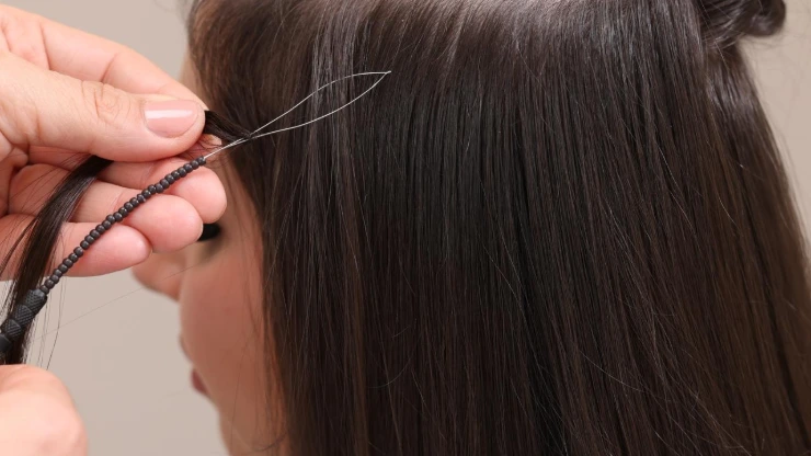 Kann eine Ghostloop® Extensionssträhne einmal herausgehen? Ja, das kann passieren. Durch natürlichen Haarausfall, denn das eigene Haar befindet sich immer in verschiedenen Wachstumsphasen. Das ist normal und kein Grund zur Sorge. Anders sieht es bei ungewöhnlich starkem Zug aus. Bei vielen anderen Systemen bedeutet das: Die Strähne geht heraus und reißt Eigenhaare mit. Bei Ghostloop® nicht. Die Strähne zieht sich über den Ring und das Eigenhaar bleibt vollständig intakt. Sie kann sofort wieder eingesetzt werden. Und weil jede Ghostloop® Strähne einzeln sitzt und sich frei bewegt, gibt es weniger Punkte, an denen sich beim Bürsten oder Frisieren Haare verfangen und herausreißen könnten. Das Haar bleibt gesund, auch im Alltag.