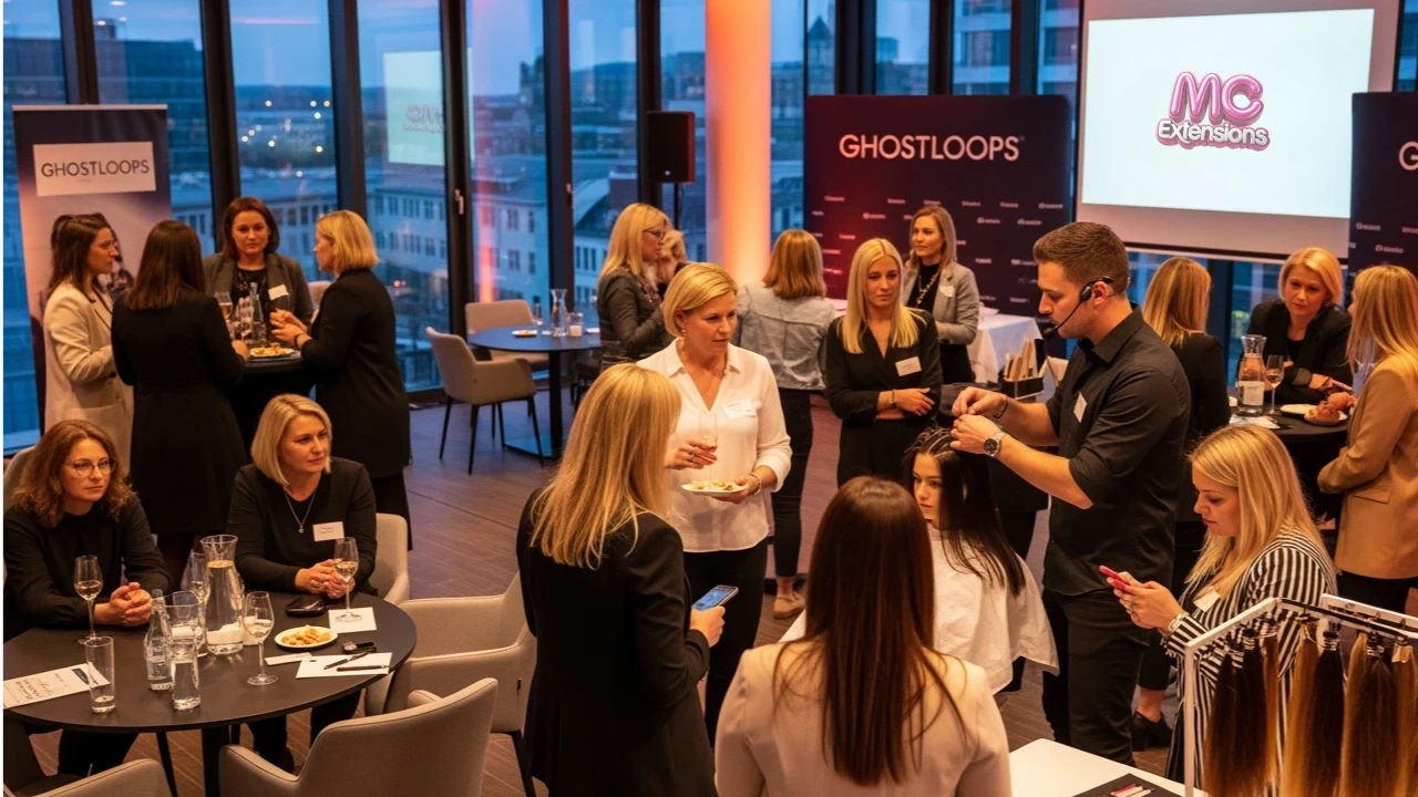Was ist das Ghostloop® System und wie unterscheidet es sich von anderen Extensions? Ghostloop® ist eine von McExtensions entwickelte Methode zur Haarverlängerung und Haarverdichtung, die auf dem Prinzip der losen Kopplung basiert. Anders als bei Nanoring-, Bond-, Tape-In- oder ähnlichen Systemen wird die Extensionssträhne nicht starr am Eigenhaar fixiert. Stattdessen legt sie sich in einer Ringform um das natürliche Haar – wie ein seidener Vorhang, der fällt statt klemmt. Ein 2,9 mm kleiner, silikonbeschichteter Ghostring sichert die Strähne vor dem abrutschen, ist jedoch nicht fest oder starr mit der Strähne verbunden. Das Ergebnis ist eine Verbindung, die sich mit dem Haar bewegt statt gegen es zu arbeiten.