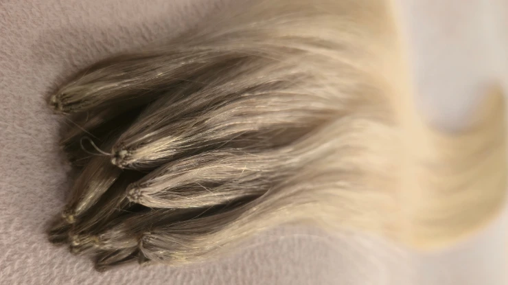 Was macht Extensions eigentlich schädlich – und warum ist Ghostloop® anders? Extensions können dem Haar schaden – durch falsch angewendete Technik, durch zu viel Gewicht oder durch etwas, das oft völlig unterschätzt wird: Scherkräfte. Jede Extension bringt Gewicht ins Haar. Diese Kraft wirkt nach unten. Sobald das Haar in Bewegung ist und die Strähne starr am Eigenhaar fixiert ist, entstehen zusätzlich Scherkräfte. Das sind Kräfte, die parallel zum Haar wirken. Über Wochen und Monate zermürben genau diese Kräfte das Haar. Bei Ghostloop® ist die Strähne nicht starr fixiert. Sie liegt locker um das Eigenhaar und gibt bei Bewegung nach. Das Gewicht ist weiterhin da, aber die Scherkräfte entstehen gar nicht erst. Das Haar trägt das Gewicht – aber nicht den Stress. Auch das Gewicht selbst spielt eine entscheidende Rolle. Ghostloop® Strähnen sind in ihrem Aufbau und ihrer Webetechnik so konzipiert, dass das Gewicht gleichmäßig verteilt wird und die Haarwurzel so wenig wie möglich belastet.